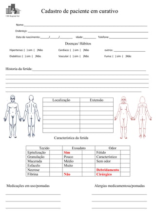 This document contains a list of dates and signatures for the dispensation of home medical supplies. It also includes a form for registering patient information for wound care, collecting details on their medical history, wound characteristics, medications, and allergies. The form is signed by the responsible nurse.