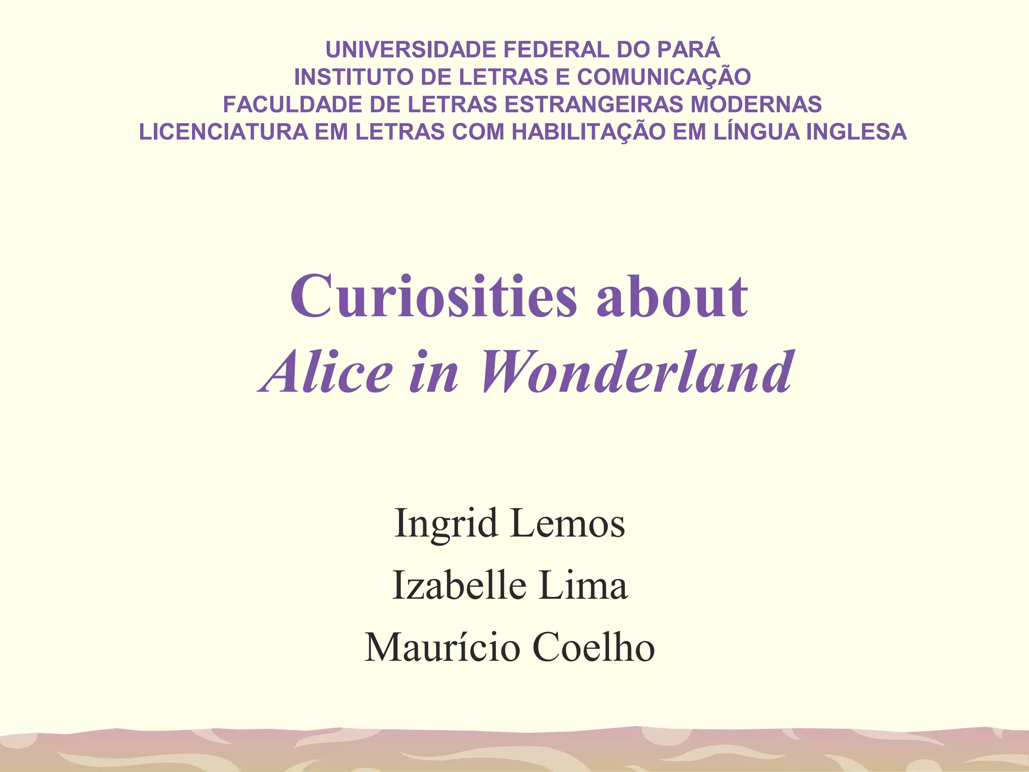 The document explores the origins and cultural impact of 'Alice in Wonderland,' originally written by Lewis Carroll, whose real name was Charles Lutwidge Dodgson, in 1865. It discusses the inspiration behind Alice's character, notable adaptations, and lesser-known facts about the book. Additionally, it highlights how the story has influenced various media, particularly during the cultural revolutions of the 1960s and 1970s.