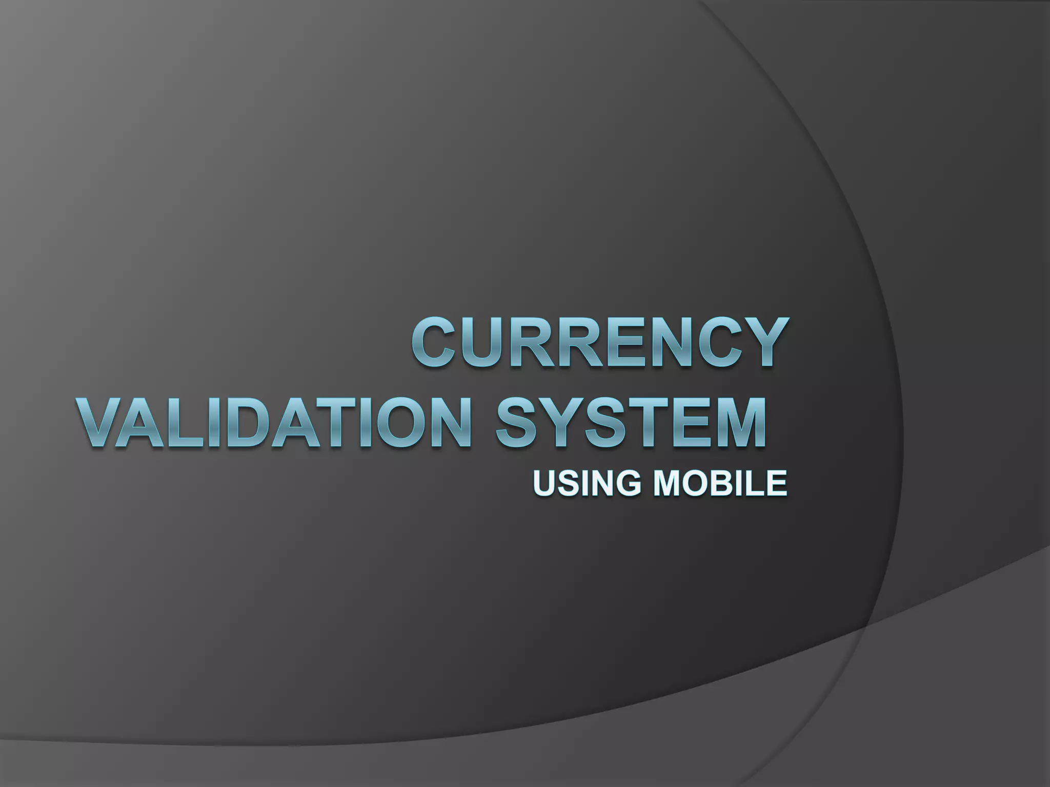 This document describes a currency validation mobile application that uses image processing techniques to determine if a currency is counterfeit. The application takes a photo of the currency using a mobile device, preprocesses the image by removing noise and background, determines the currency value using MSE or SURF comparison, extracts security features, and checks validity by comparing features to real currency using neural networks or SURF. If valid, the result is sent back to the mobile. The system is currently applied to Egyptian currency and has limitations such as requiring photos with >5MP in quality and a black background.