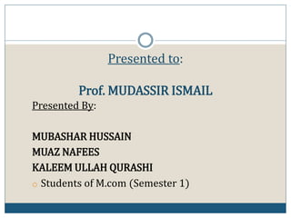 This document discusses various types of current accounts offered by Allied Bank Limited in Pakistan. It provides details on six main types of current accounts: Allied Current Account, Easy Current Account, Aasan Current Account, Pension Current Account, Allied Business Current Account, and Khanum Current Account. For each account type, it outlines the key features and requirements for opening the account. Overall, the document aims to explain the different current account options available to individuals and businesses through Allied Bank Limited.