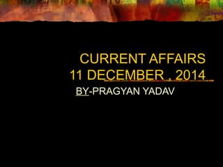 The document is a current affairs quiz from December 11, 2014 containing 13 multiple choice questions and their answers. Some of the key information summarized: