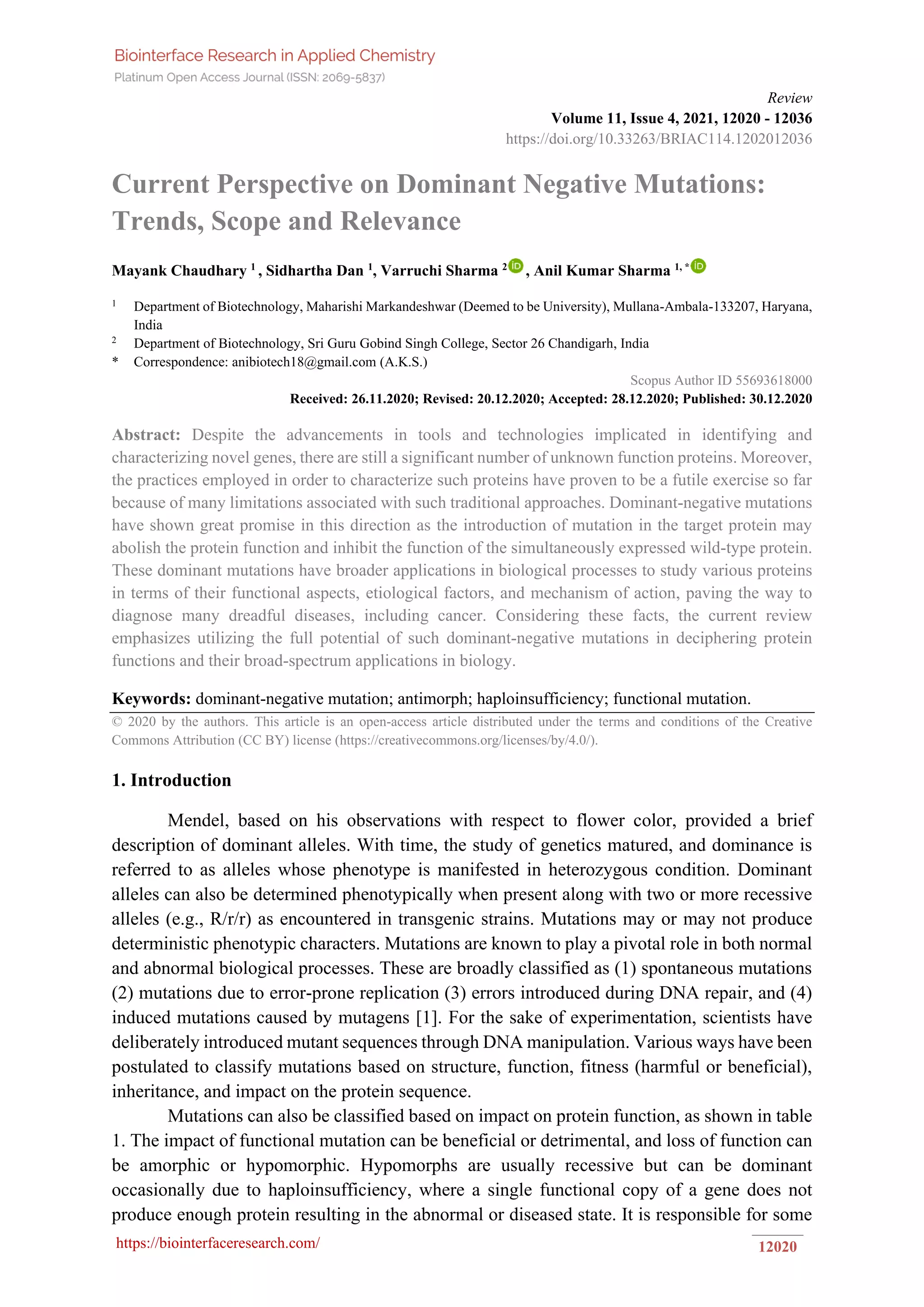 The document reviews the implications of dominant-negative mutations in understanding protein functions and their applications in biology, particularly in diagnosing diseases like cancer. It highlights the limitations of traditional protein characterization approaches, proposing that these mutations can inhibit wild-type protein function and provide insight into genetic disorders. Additionally, it discusses the distinction between dominant-negative mutations and haploinsufficiency, emphasizing their roles in various biological and disease processes.