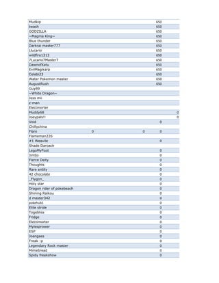 The document contains a table listing the names of 121 players and their scores in 17 categories. The player with the highest overall score is Dragon expert with 8305 points. The Assassin has the second highest overall score of 5700 points. Kevin Garrett has the third highest overall score of 5230 points.