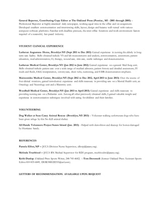 Daniel MacNeill is a registered nurse seeking a new nursing position. He has nursing licenses in Michigan and New York and certifications in BLS, infection control, and EMT. He has an associate's degree in nursing and a bachelor's degree in journalism. His work experience includes positions as a nurse case manager, waiver service provider, and newspaper reporter. He has clinical experience in long-term care, medical-surgical, mental health, oncology, maternity, and pediatrics units. He is looking to further his experiences and utilize his skills as a caring nurse.