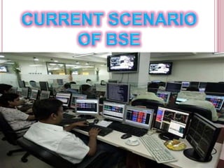 The document provides information about the Bombay Stock Exchange (BSE) in India. It discusses that the BSE is located in Mumbai and was established in 1875, making it Asia's first stock exchange. It also lists some key facts about the BSE, such as it being the 11th largest stock exchange globally and having over 5,500 publicly listed companies. The document then discusses the role of stock exchanges in India and provides an overview of the BSE's management, network, and objectives.
