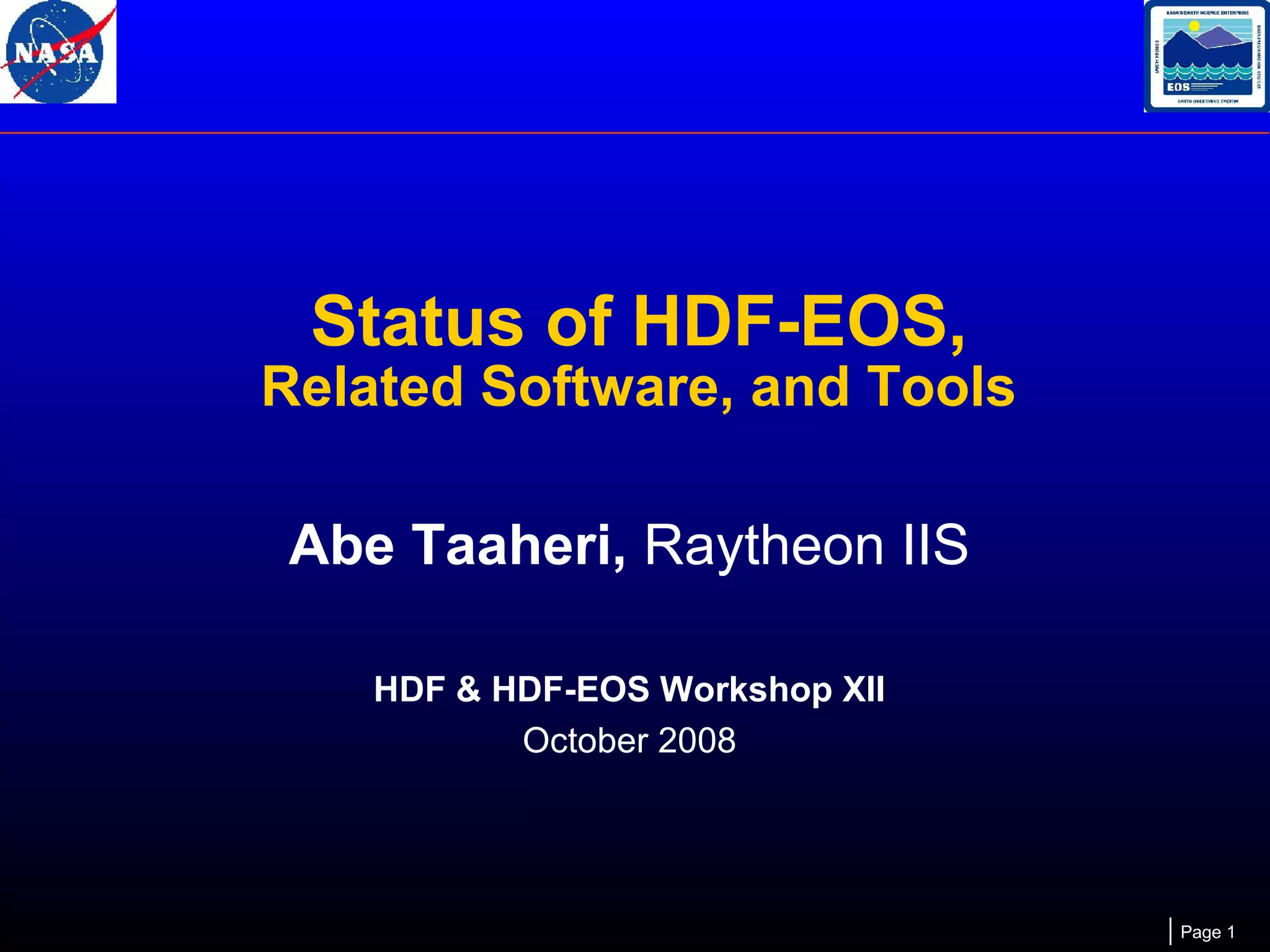 The document provides an overview of the status, support, and functionalities of the HDF-EOS toolkit, software releases, and related applications. It highlights maintenance support, software compatibility across various operating systems, and upcoming developments, including additional features for HDF-EOS viewers and converters. Key tools such as the SDP/MTD toolkit and HDF-EOS plugins are discussed, especially in terms of their roles in processing and converting Earth science data structures.