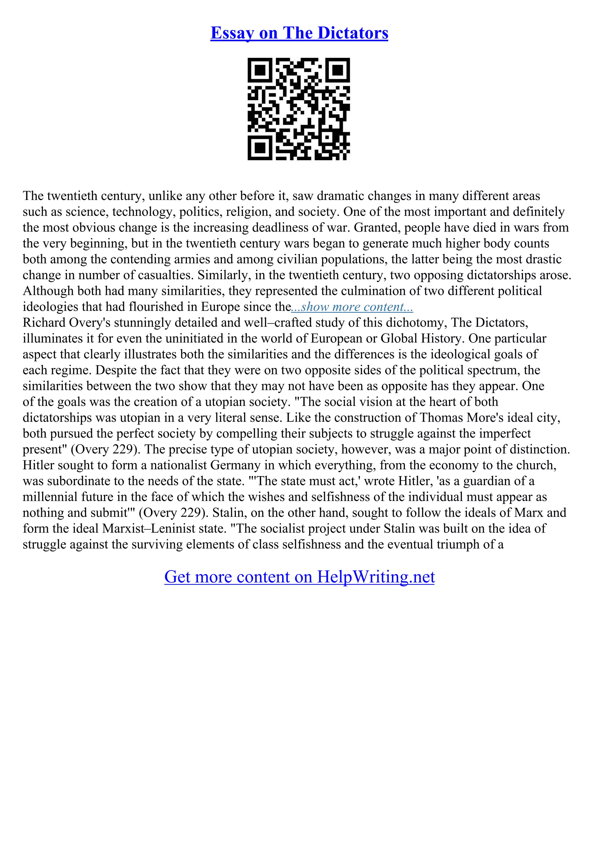 The document discusses the significant changes brought by the twentieth century, particularly in relation to the rise of dictatorships and the increasing deadliness of war. It highlights the ideological goals of two opposing regimes: Hitler's nationalist vision for Germany and Stalin's Marxist-Leninist state, showcasing their similarities despite ideological differences. Additionally, it covers themes of societal communication and shifts in writing styles from the author's experiences, emphasizing the progress made in writing skills and the importance of effective communication in both personal and professional contexts.