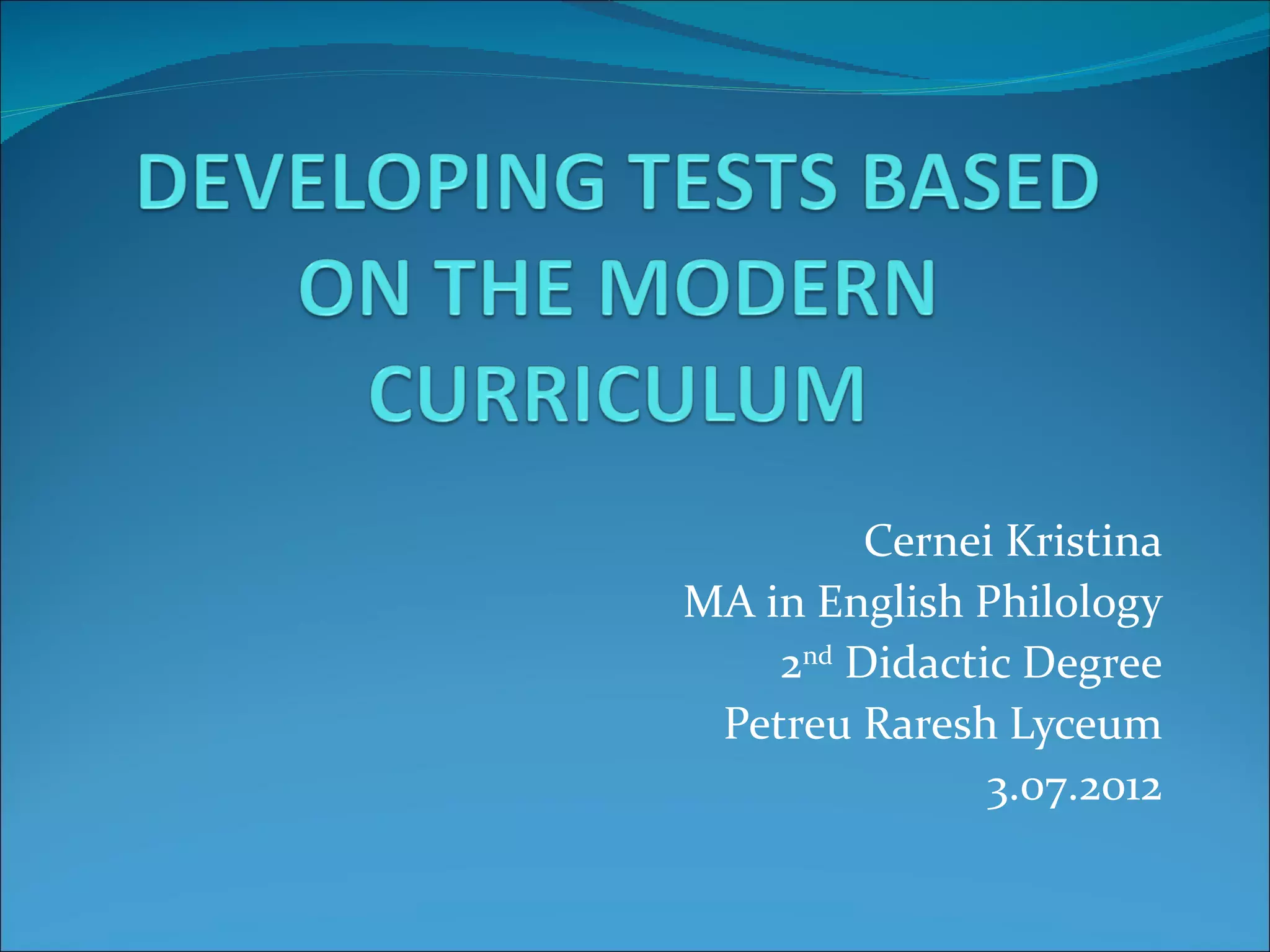 The document provides a 7-step process for teachers to develop tests based on the modern curriculum: [1] Decide what to evaluate, [2] Determine the number of test items, [3] Count and check the items, [4] Assign points to each item, [5] Create a value table, [6] Complete the test, and [7] Complete a verification scale. The goal is to help teachers create evaluations that align with the learner-centered approach and a variety of teaching methods used in modern curriculums.