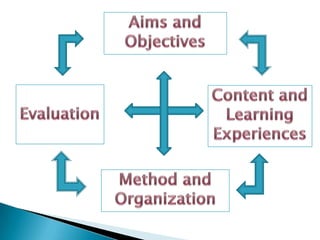 The document discusses the definition and components of curriculum design, including the types of curriculum designs, elements such as objectives, content, and learning experiences. It also examines different philosophies that influence curriculum as well as domains and taxonomies for defining objectives and evaluating learning outcomes.
