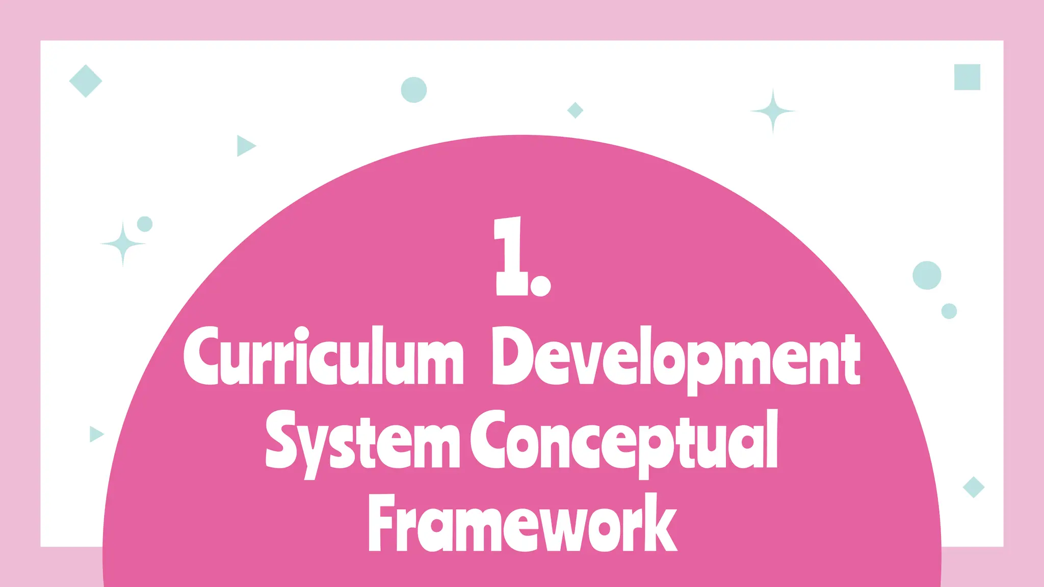 The document discusses the conceptual framework for a curriculum development system. It defines key terms like curriculum, system, and conceptual framework. It explains that a curriculum development system is a customized, coherent program for continually updating and improving curriculum. The system has fundamental elements like purpose, means, and assessment outcomes. It involves stages like conceptualizing, contextualizing, operationalizing, and institutionalizing. The conceptual base for curriculum focuses on learning through big ideas that are timeless, transferable, and universal.