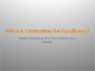 The Curriculum for Excellence in Scotland aims to provide a coherent and flexible education for children and young people aged 3 to 18, focusing on developing key capacities like successful learners and responsible citizens. It emphasizes a broad general education that enhances literacy, numeracy, and life skills while offering tailored support and options for personalization. The curriculum encompasses interdisciplinary learning and is structured around eight core areas to foster connections across subjects.