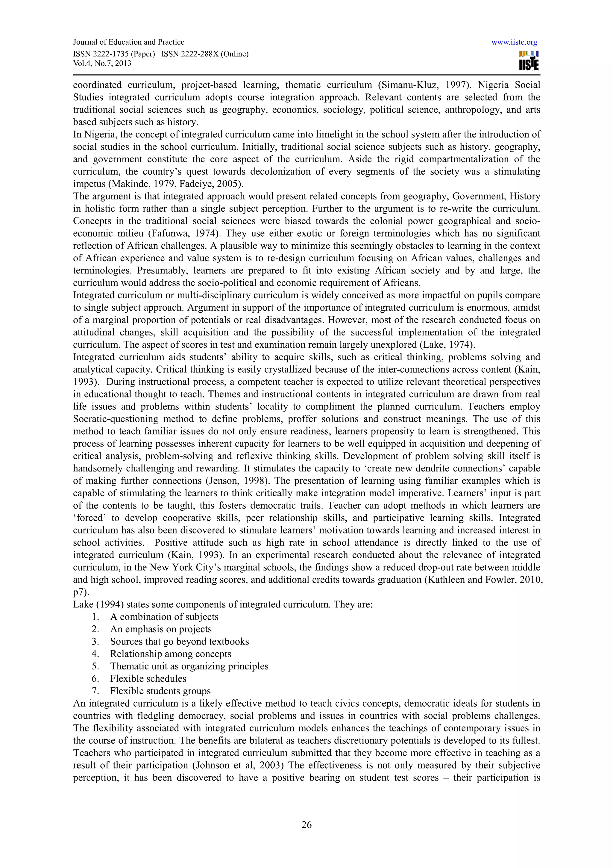 2) It analyzes test score data from 140 students in Nigeria who took Social Studies (an integrated curriculum subject) and traditional social science subjects like Economics and Government.