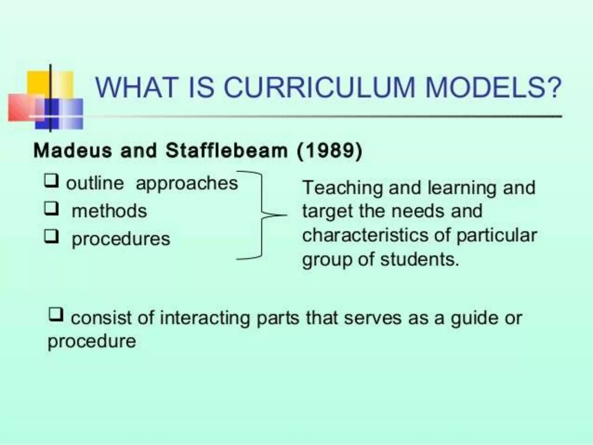 Introduction to curriculum models, types, their importance in education, and defining features. Steps in curriculum development: diagnosing needs, formulating objectives, and selecting content.Categories of curriculum models based on focus, structure, including Taba, Tyler, and Saylor models.