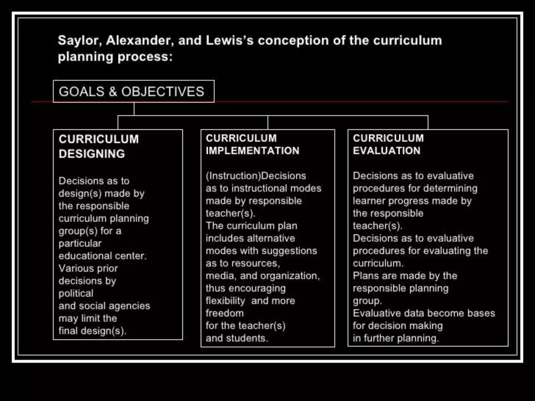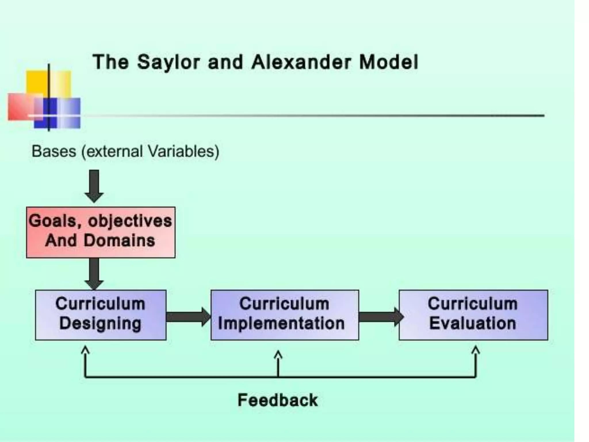 Overview of Saylor and Alexander's four-step curriculum development process aligning with educational goals.