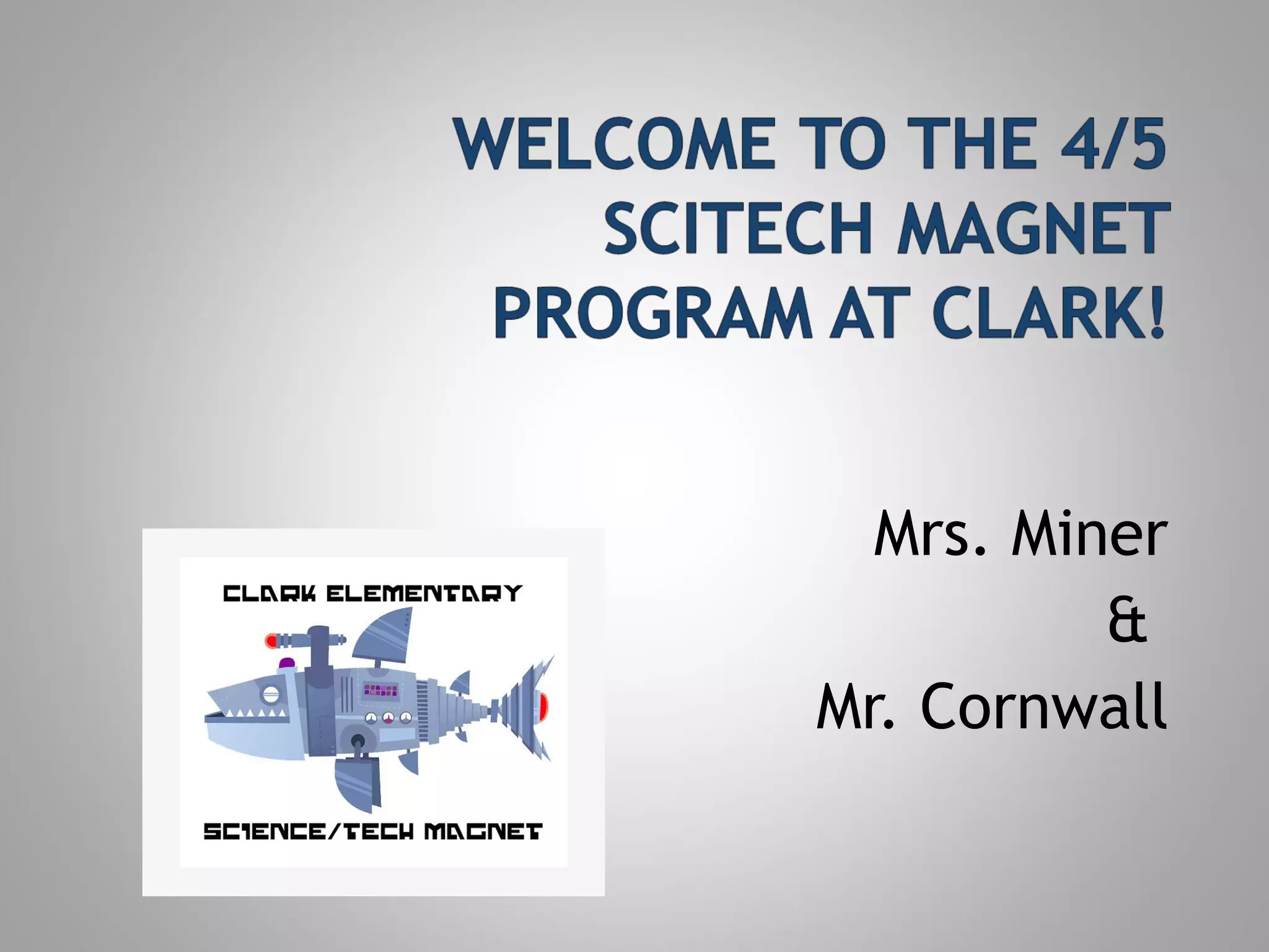 This document provides an overview of the Science/Technology Magnet program at Clark Elementary. It discusses the hands-on, collaborative approach to learning science and technology. Key aspects include field research in the local environment, opportunities to experience science and technology first-hand, and an emphasis on higher-level thinking skills. The schedule and curriculum for 4th and 5th grade are also outlined, covering subjects like math, reading, writing, science, and social studies.