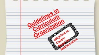 This document discusses guidelines and concepts related to curriculum organization, including: