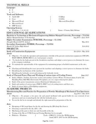 Souvik Mukherjee is a mechanical engineer seeking an opportunity to progress his career and knowledge. He has over 2 years of experience maintaining machines as an Assistant Manager and Service Engineer. He has also completed internships focusing on construction processes, power generation systems, and safety standards. Souvik holds a Bachelor's degree in Mechanical Engineering and has experience with CAD software, programming languages, and operating systems. His objective is to join a challenging and creative work environment where he can realize his full potential.