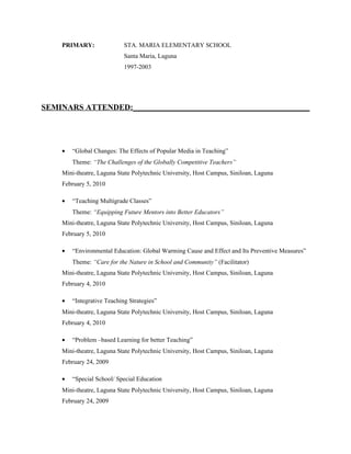 1. Maricris Mendoza Villaflor from Sta. Maria, Laguna who graduated from Laguna State Polytechnic University in 2011 with a Bachelor's degree in Secondary Education.