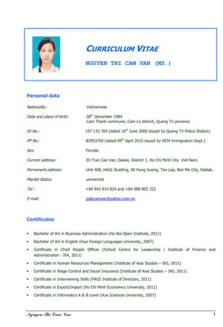 Curriculum Vitae Cam Van (E)