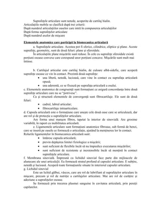 Kinetoterapia este o știință care studiază mișcarea organismelor vii, axându-se pe refacerea forței musculare și coordonării. Articulațiile, muschii, nervii și conexiunile motrice sunt esențiale în biomecanica mișcărilor umane. Clasificările articulațiilor și structurile musculare sunt prezentate pentru a evidenția rolurile acestora în aparatul locomotor.