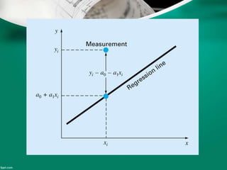 Curve fitting is the process of finding the best fit mathematical function for a series of data points. It involves constructing curves or equations that model the relationship between dependent and independent variables. The least squares method is commonly used, which finds the curve that minimizes the sum of the squares of the distances between the data points and the curve. This provides a single curve that best represents the overall trend of the data. Examples of linear and nonlinear curve fitting are provided, along with the process of linearizing nonlinear relationships to apply linear regression techniques.