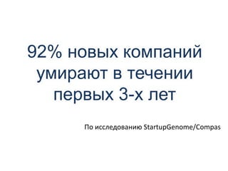 Документ обсуждает важность понимания клиента для успешного стартапа, подчеркивая, что 80% успешных компаний на начальном этапе сосредотачиваются на выявлении проблем пользователей, а не на продукте. Приводятся данные исследования о высокой доле провалов стартапов из-за преждевременного роста и недостатка реальных потребностей клиентов. Рекомендуются практические задания для определения клиентских сегментов и проведения интервью для подтверждения гипотез о проблемах и решениях.