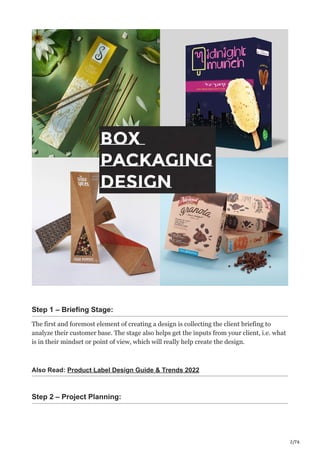 The document discusses the importance of custom box packaging design and its impact on consumer perceptions. It outlines a step-by-step process for creating effective packaging, from briefing and project planning to design concepts and refinement, while providing examples across various industries. Finally, it emphasizes the need for professional expertise to achieve attractive and functional packaging that enhances brand value.