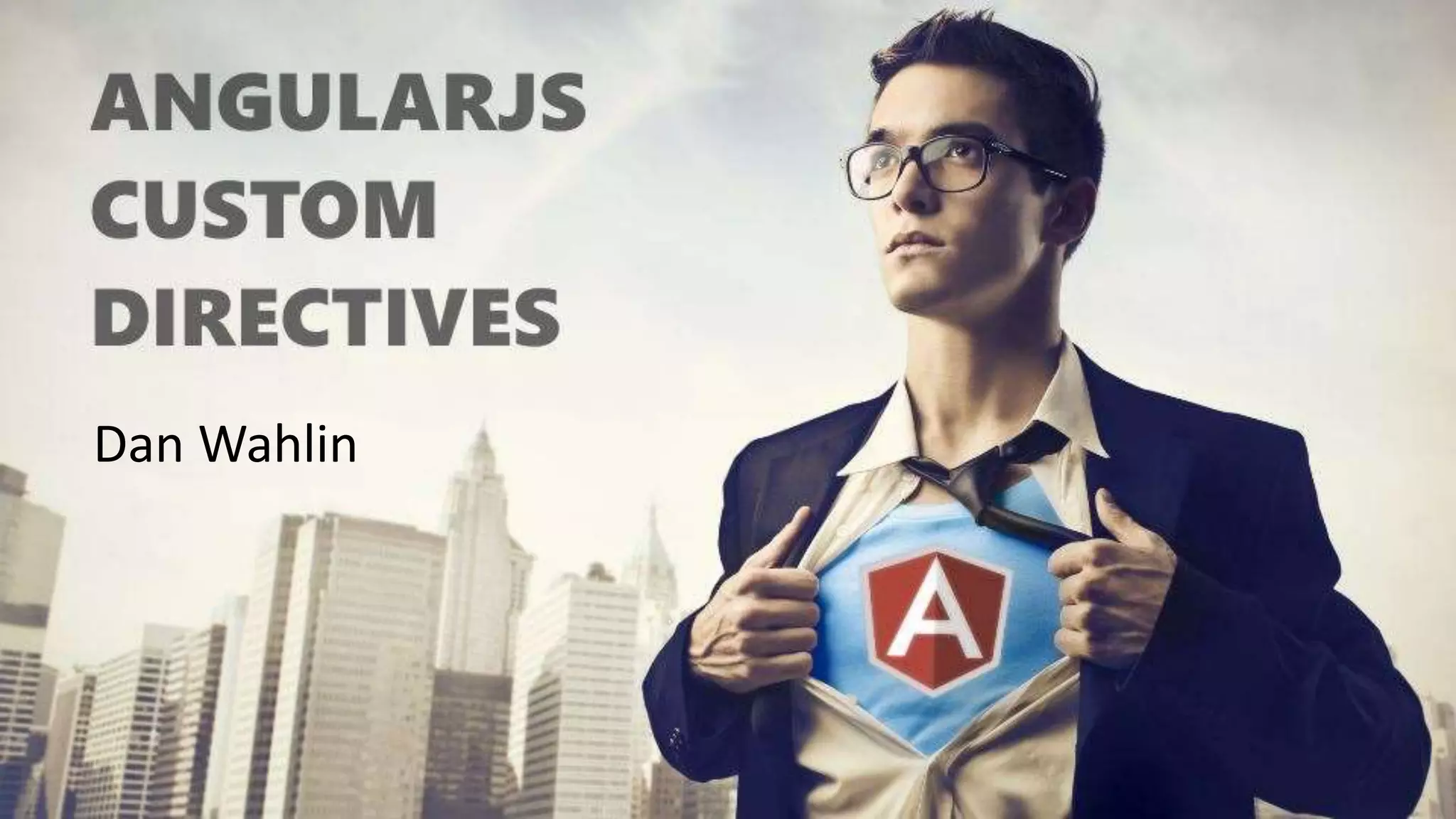 The document provides an overview of AngularJS directives, detailing their roles, scope types (shared vs. isolate), and examples of common directives. It includes technical explanations on directive creation, data binding, and DOM manipulation. The document also mentions resources for further learning and promotional offers for video courses.