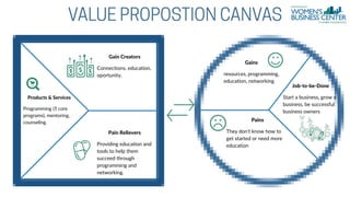The document discusses a 4-part customer development workshop series with sessions focused on customer discovery, validation, creation, and company building. It provides information on personas, value propositions, business models, and traction models. An example persona is also included of a fictional high school girl named Teena dealing with common adolescent issues. The last part provides an example of how to outline a persona including demographics, background, and identifiers.