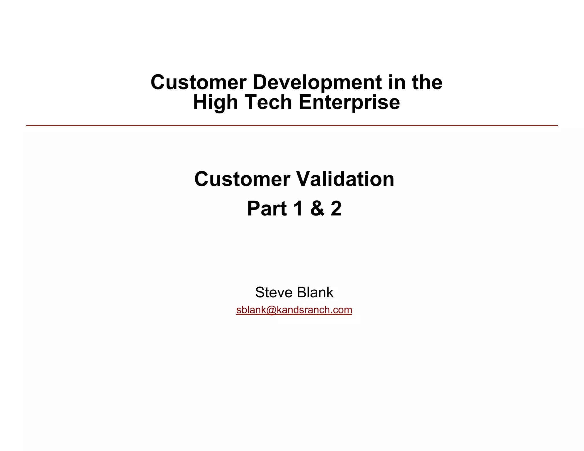 1) The document discusses customer validation, which involves getting ready to sell, selling to early customers, and verifying the business model.