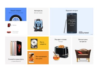 Документ обсуждает использование больших данных в интернет-ритейле, акцентируя внимание на построении рекламных кампаний на основе потребительского поведения и важности персонализации. Он охватывает аспекты, такие как управление жизненным циклом пользователей и товарные рекомендации, а также методы повышения эффективности взаимодействия с клиентами. Приводятся примеры ретаргетинга и реактивации лучших клиентов, чтобы оптимизировать расходы на маркетинг и улучшить результаты продаж.