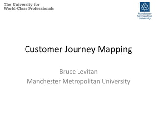 The document outlines customer journey mapping, emphasizing its role as a visual representation of customer interactions with organizations, highlighting experiences and 'moments of truth.' It discusses the importance of understanding customer feelings to improve service quality and focuses on key stages within the recruitment journey for prospective university students. The text also offers guidance on effective mapping practices and the necessity of multiple maps for complex customer experiences.