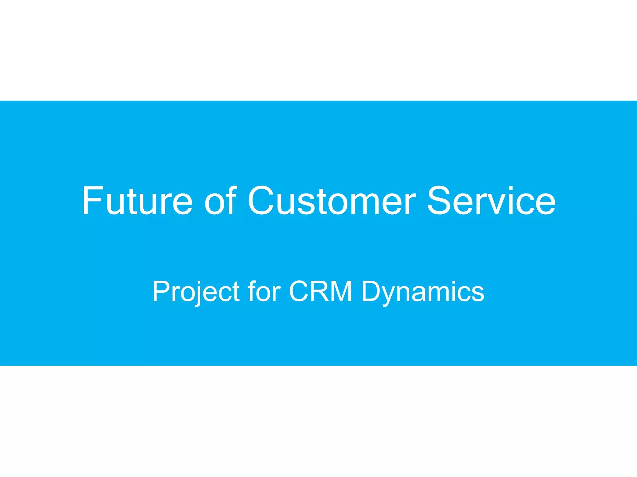 The document discusses the future of customer service and experience. It notes that customer experience goes beyond just customer service by being a full, end-to-end experience from first hearing about a company to receiving a purchased product. It also discusses how customer experience will be a key factor for various industries like retail, government, healthcare and finance. The retail sector in particular will be dominated by customer experience as customers have more choices and ways to access those choices through different channels.
