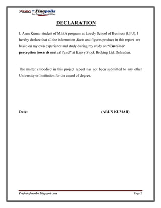 The document provides an overview of Karvy, an Indian financial services company. It details Karvy's various services including stock broking, distribution of financial products like mutual funds, depository services, advisory services, and more. It outlines Karvy's history and growth over the past 20 years to become a premier integrated financial services provider in India.