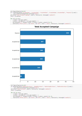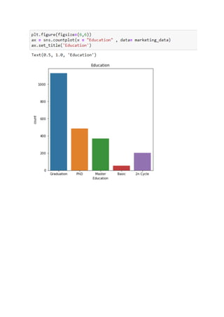 This document presents a detailed exploratory data analysis of customer personality traits using machine learning techniques. It discusses how understanding customer segments can enhance marketing efforts and product modifications, including insights on financial behaviors and demographics. The analysis identifies correlations between income, spending habits, and customer demographics, providing a foundation for predictive algorithms in future marketing campaigns.