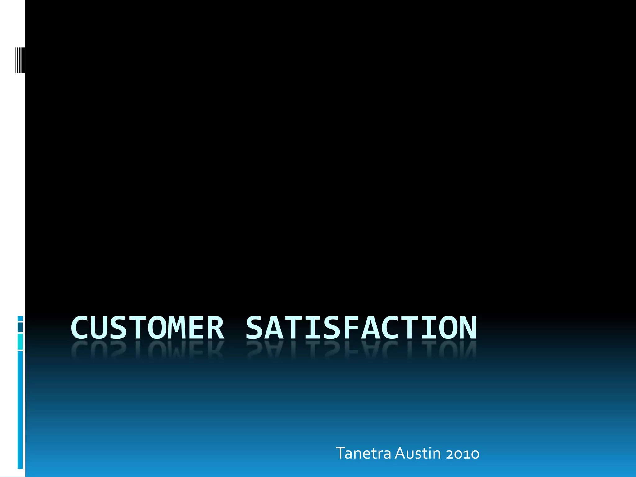 Customer satisfaction is essential for business success. It is measured by the number of satisfied customers, how much and how often they buy. Total quality management uses customer satisfaction as a measure of quality. A successful TQM program defines quality from the customer's perspective in terms of meeting their expectations for a quality product, reasonable price, on-time delivery, and outstanding service. Customer feedback enables organizations to discover satisfaction levels and priorities for quality improvements.