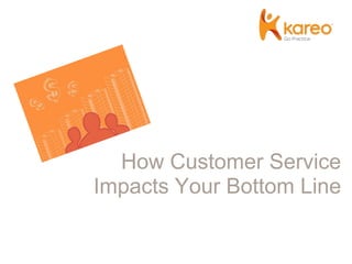 This document discusses how customer service impacts the bottom line for healthcare practices. It begins with an introduction and schedule for the presentation. It then discusses how customer service has traditionally been non-existent in healthcare, except for certain specialties. Poor customer service can result in longer wait times, rude staff, an unkempt practice environment, and poor administrative follow-up. However, practices with great customer service are less likely to be sued. The presentation provides tips for improving customer service and reducing wait times. It emphasizes the financial value patients provide to a practice over their lifetime and stresses the importance of patient retention through strong customer service. Finally, it introduces Kareo's role in helping practices improve customer, scheduling, and billing functions.