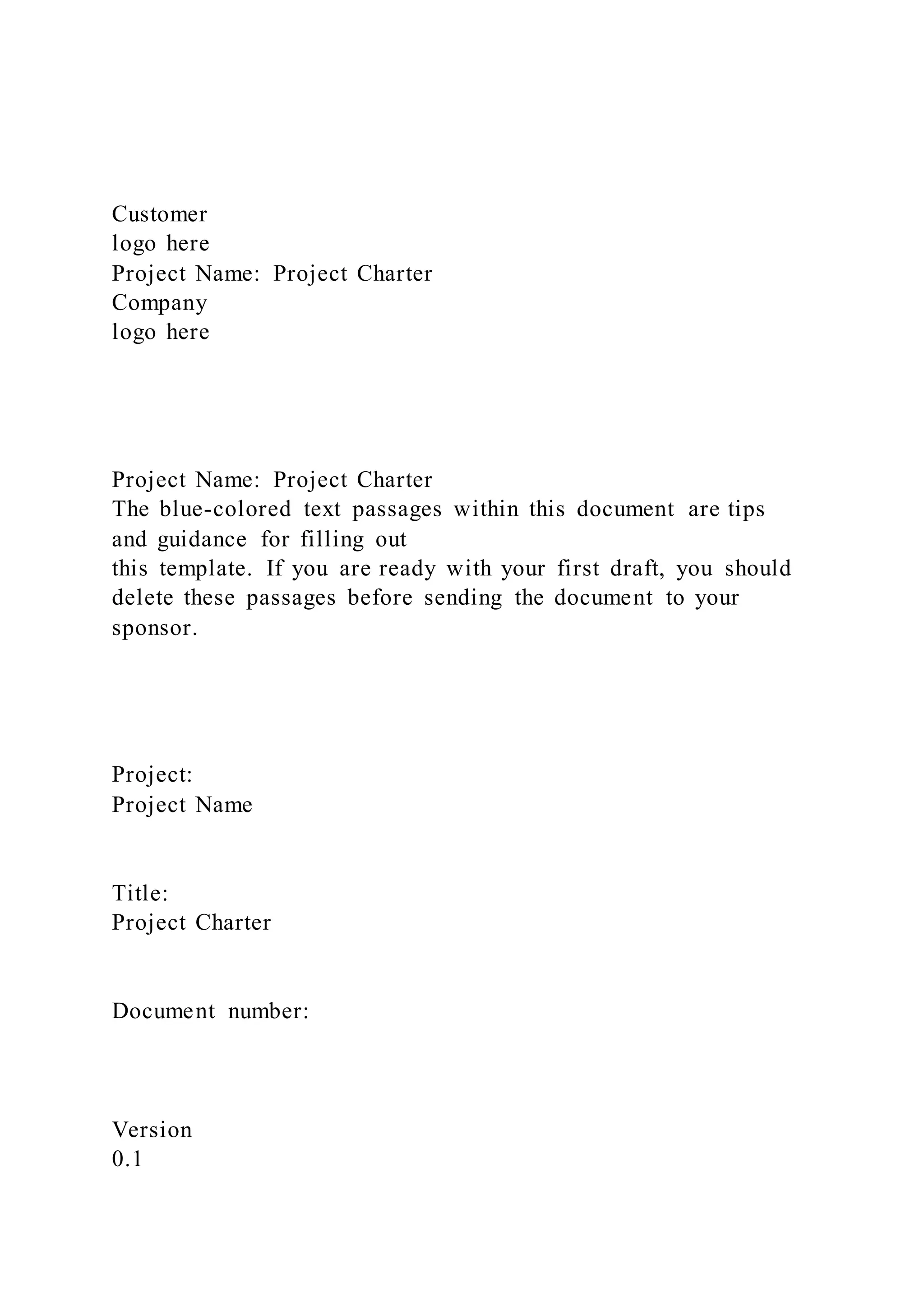 The document serves as a project charter template, guiding users on how to fill it out for effective project management. It includes sections on project goals, success criteria, risks, stakeholders, and project categorization, emphasizing the importance of measurable goals and internal communication. Additionally, it underscores the significance of aligning the project with the company's strategic objectives, particularly in the pharmaceutical context.
