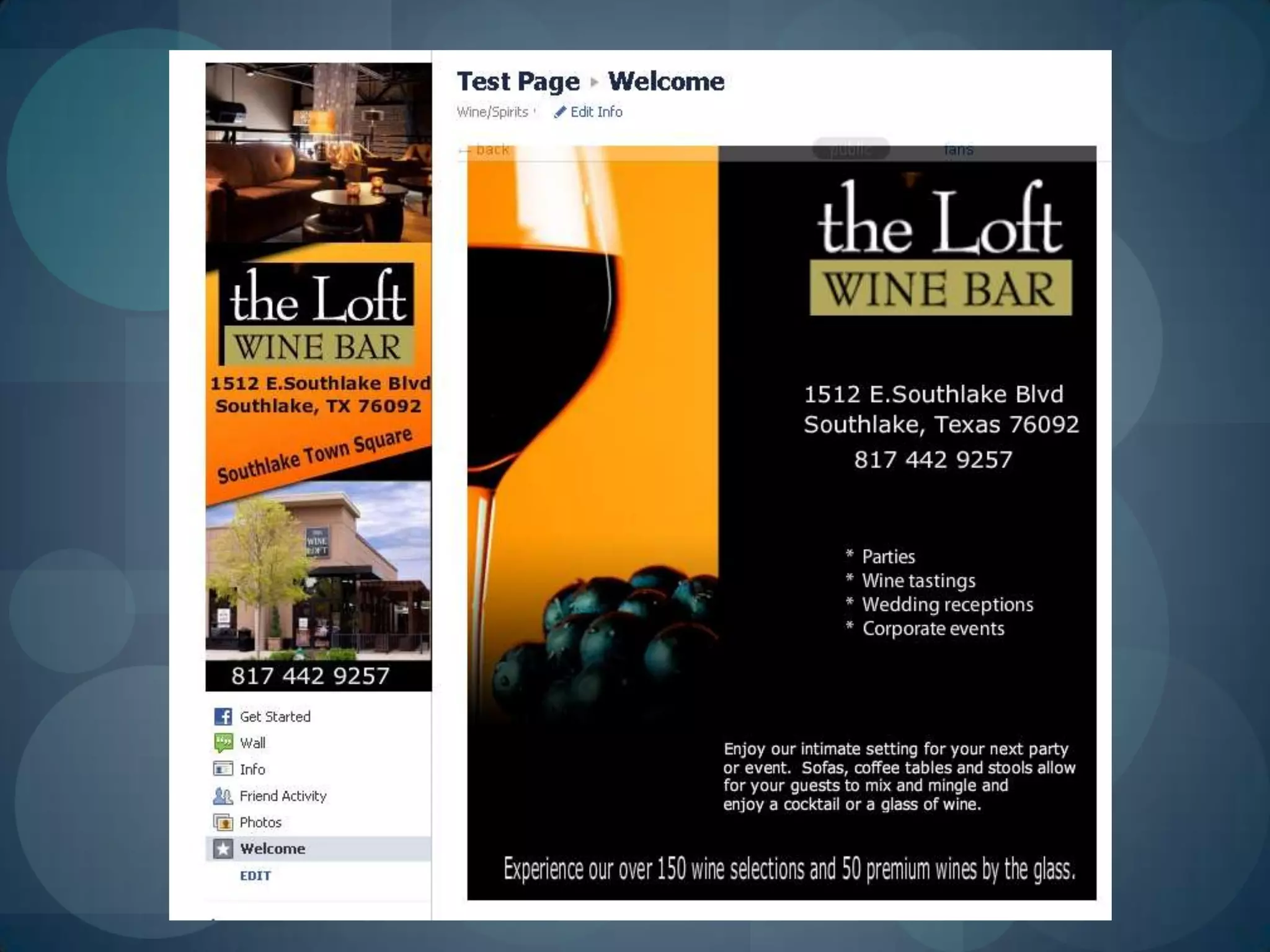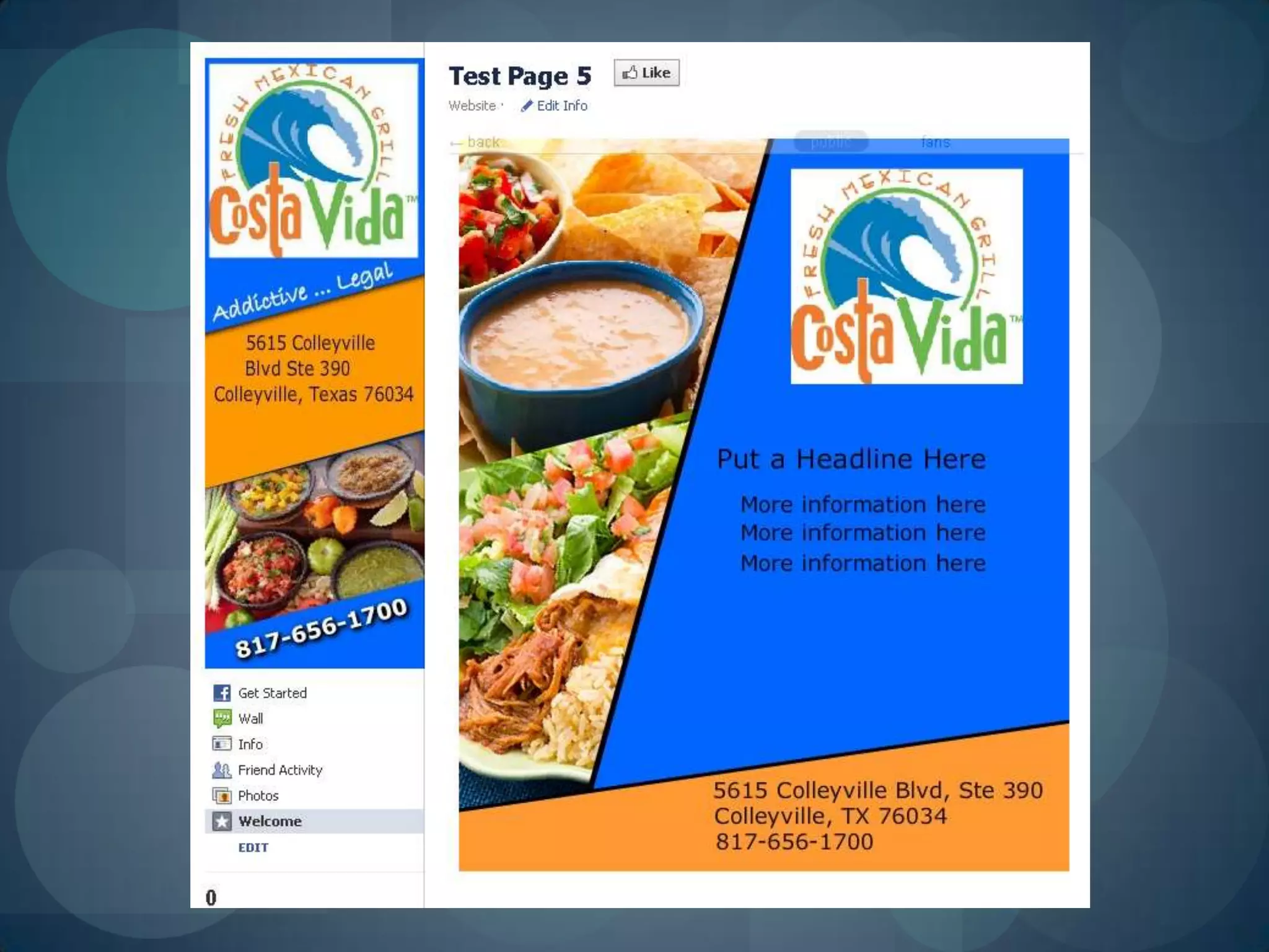 This document discusses the importance of having an attractive and informative Facebook page for businesses. It shows examples of poorly designed pages versus well-designed pages that would make a good first impression on new visitors. It encourages businesses to call their number to learn how a customized Facebook page can help attract more new customers.