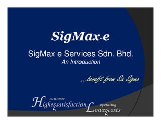 SigMax-e is a consulting, training, and outsourcing company that helps organizations enhance performance and productivity through customized process outsourcing, strategic facilitation, and training programs in leadership, performance management, team effectiveness, and Six Sigma. SigMax-e has provided services to major clients across various industries in countries like Malaysia, Singapore, South Korea, the United States, United Kingdom, and Indonesia. Contact information is provided for Srikrishna Vadrevu, the company representative.