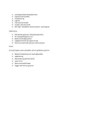 Sep. 1993 - 1994, Salgsassistenti lingeributik –Hos Lis i Viborg