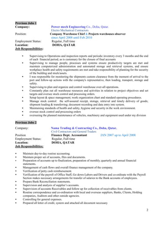 Ahmed M. M. Kheder is seeking a position that utilizes his over 10 years of experience in finance, accounting, administration, and coordination. He holds a Bachelor's degree in finance and accounting from ZAGAZIG University in Egypt. His professional experience includes positions as an accountant for Gulf Publishing & Printing Company and Powermech Engineering Co. in Doha, Qatar, where he was responsible for accounting, financial reporting, and inventory management. He is proficient in accounting software and packages like Tally, Focus, and Microsoft Office.