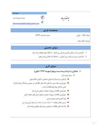١ Contact: ٠٩١٢٦٤٥١٦٨٧ shimamoghaddamjah@gmail.com ﻣﺸﺨﺼﺎتﻓﺮدي :ﺷﻨﺎﺳﻨﺎﻣﻪ ﺷﻤﺎره52439 ﻣﺘﻮﻟﺪ5