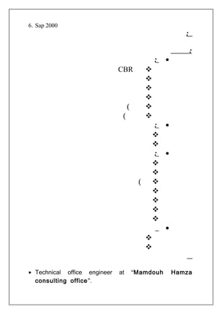 This document is a CV for Mohamed Mahmoud Ahmed Hammouda. It lists his contact information, education history, language skills, computer skills, and work experience. He graduated from the Institute of Aviation Engineering and Technology in 2013 with a degree in civil engineering. His work experience includes several roles as a site engineer and consultant on various construction projects.