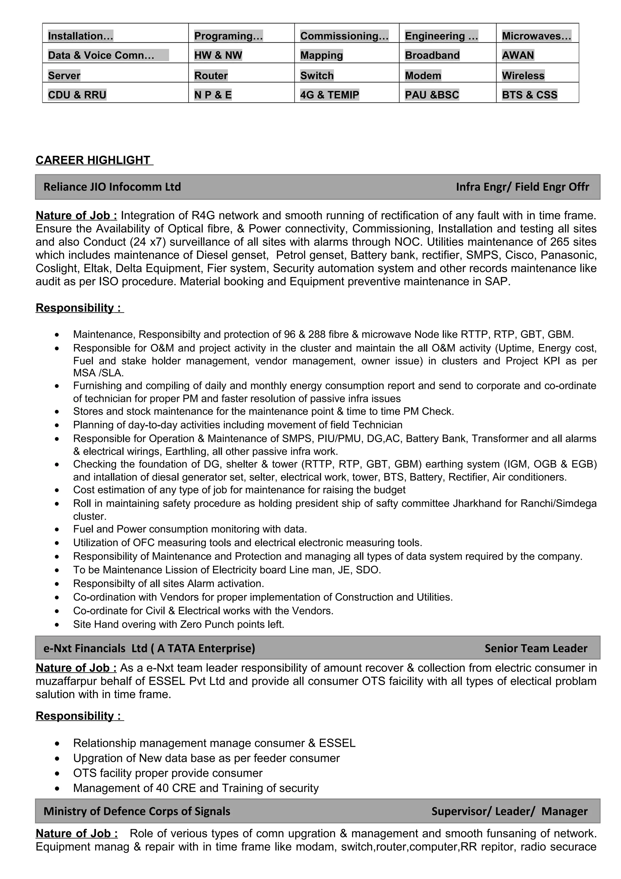 - His professional achievements include establishing various telecom networks, maintaining service level agreements, and leading teams of over 80 subordinates across multiple states.