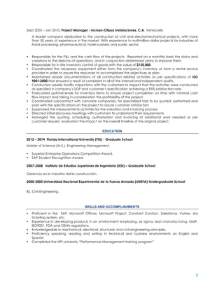 Henry Lugo has over 10 years of experience in project management, procurement, and operations leadership. He currently works as the Team Leader for the Brand Business Operations at Nature's Products Inc, where he has improved inventory turnover, assisted with market expansion plans, and streamlined packaging and pricing strategies. Previously, he held operations management roles at transportation and construction companies, implementing process improvements that increased sales, reduced costs and receivables, and ensured projects were completed on time and on budget. Lugo has an MS in Engineering Management and is proficient in various business systems, engineering disciplines, and both English and Spanish.