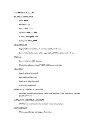 Lehen hezkuntzako musika gelako laguntzailea, XXXX ikastolan duela hile bat.