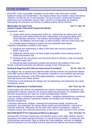 Graeme Haskett has over 20 years of experience as a consultant and interim executive. He specializes in the turnaround, transformation, and improvement of underperforming organizations. Some of his responsibilities have included restructuring teams, implementing new processes, increasing productivity, reducing costs, and improving overall performance. He has successfully completed over 20 interim roles in industries such as construction, facilities management, and engineering.