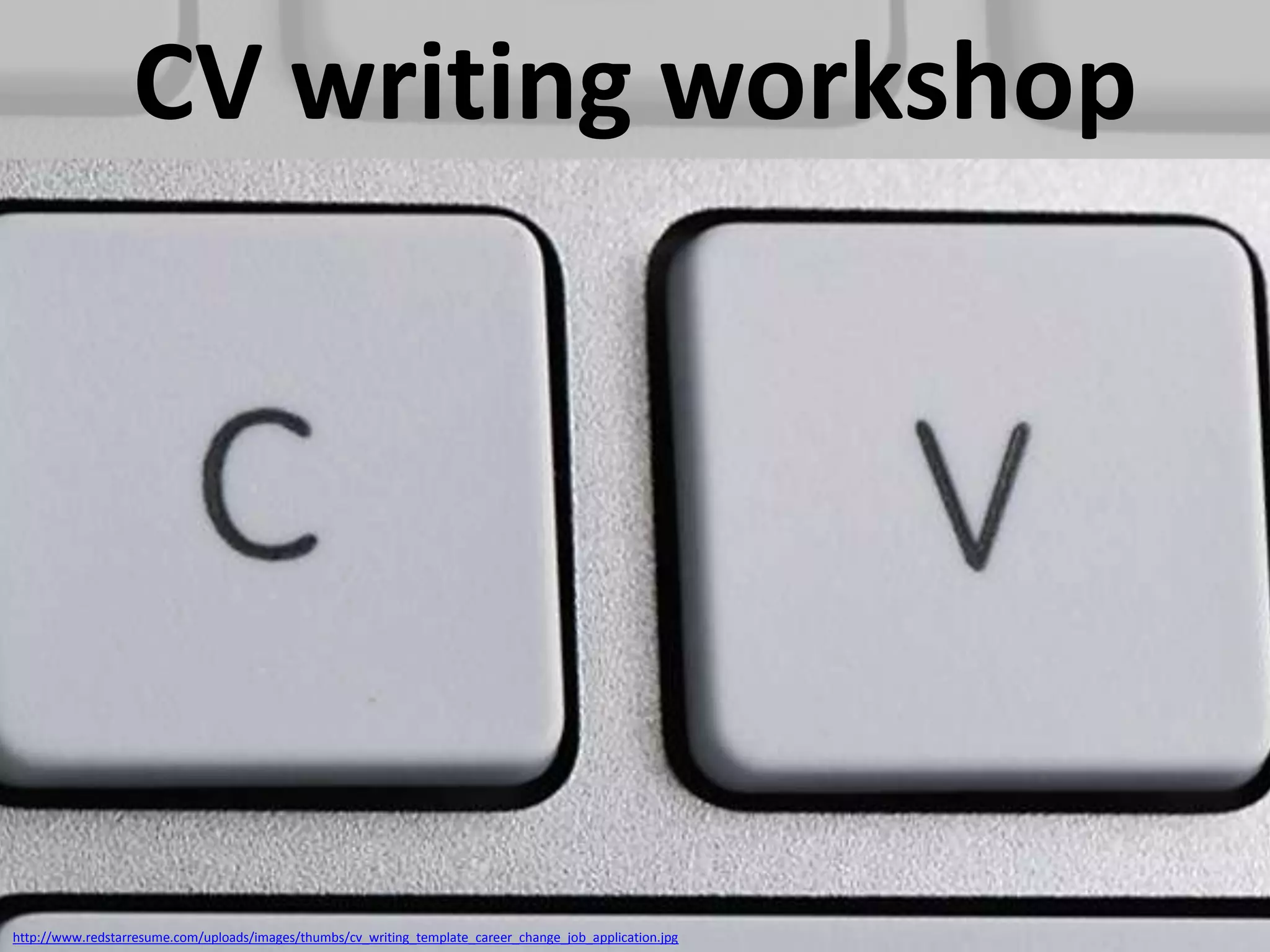 The document provides information about creating an effective CV or resume. It discusses what a CV is, how to make it effective, what must be included, and what should be avoided. Key points include tailoring the CV to specific job openings by researching the employer and connecting skills to requirements, keeping the CV concise at 2-4 pages, and avoiding unnecessary personal details or repetitive content. Common mistakes like poor grammar, lies, or using templates are warned against.