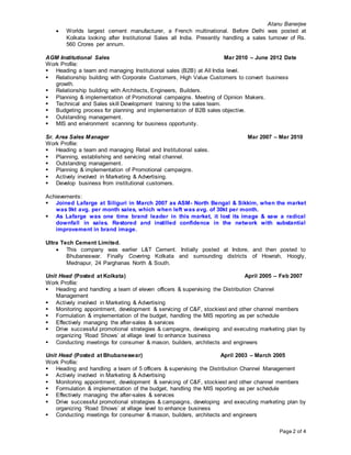 - Atanu Banerjee has over 22 years of experience in cement marketing and has held various leadership roles at major cement companies like Star Cement, Lafarge India, Ultra Tech Cement, and Raymond Ltd.